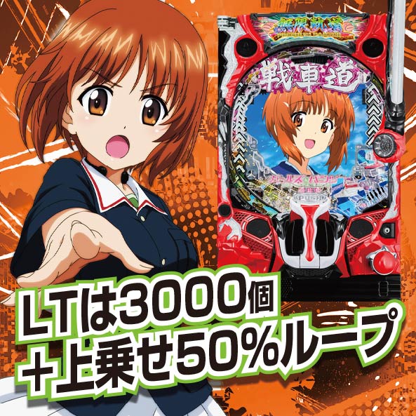 上位モードとなる戦車道RUSHは継続率約80%。戦車道RUSH終了後に当て勝つ革命へ突入した場合はST回数をリセットし、14回転以内に当った場合は出玉約3000個+上乗せ約50%となる「無限軌道」へ必ず当選する。