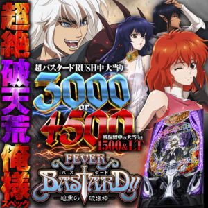 ST継続率約90%! 期待出玉11,500個の甘デジ機! 最大の注目ポイントは、新しい内規に対応したラッキートリガー搭載のスペックだという点。 これにより、同機の大当たり確率は1/99と甘デジ帯の確率であるにも関らず、超凱旋ロード突入時の期待出玉が約11,500個と、未体現の出玉性能と新しいゲーム性を実現。 RUSH(凱旋ロード)は2段階で構成され、各段階とも継続率が約90%、つまり上位RUSH(超凱旋ロード)突入時は、90%継続×2となるため、上述の通り、ミドルスペックのRUSHを超える期待出玉は約11500個を実現。 愛知・岐阜14店舗プレイランドキャッスルグループでラッキーを掴め!