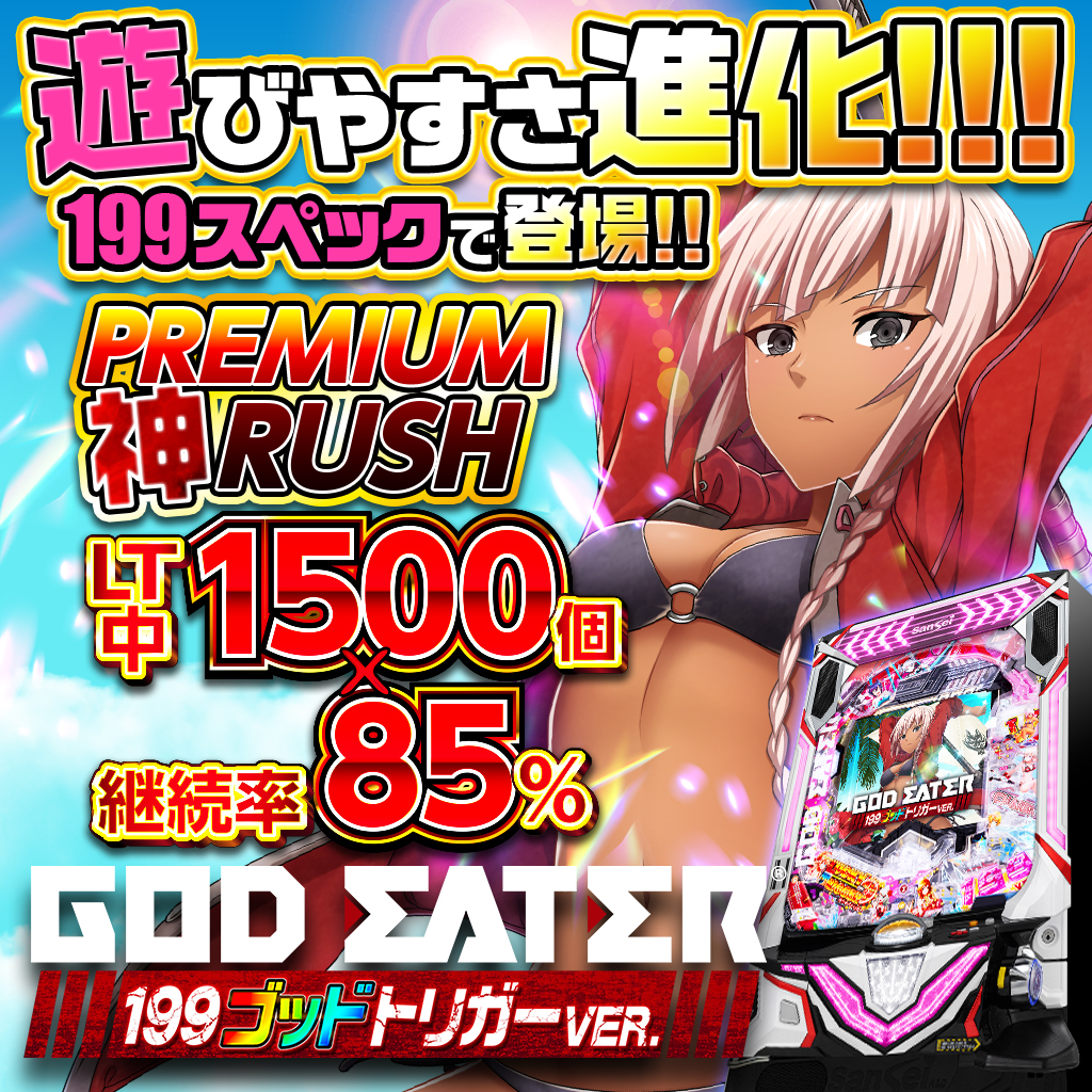 「Pゴッドイーター199 ゴッドトリガーVER.」は、突破型システムと段階的に進化するRUSHが特徴。