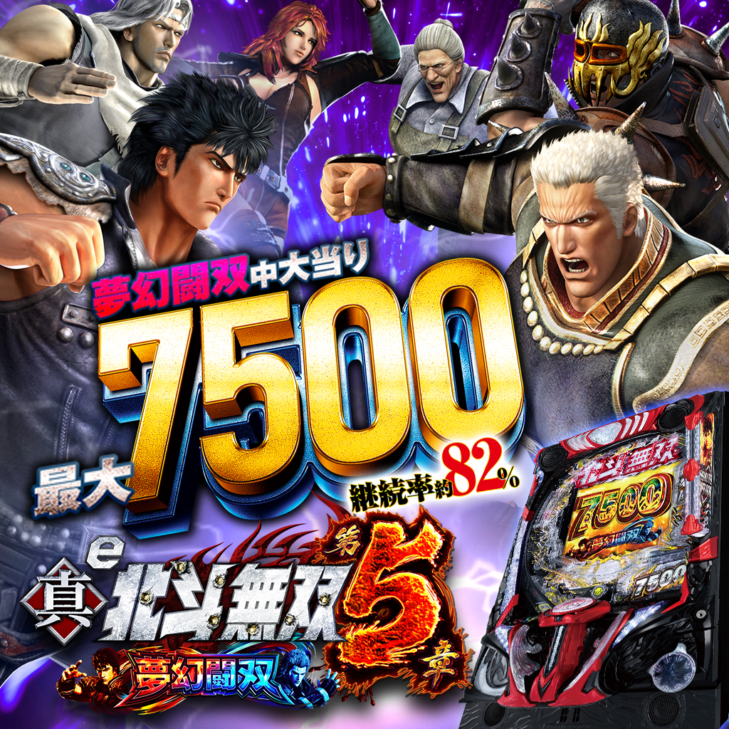 大人気シリーズ『e真・北斗無双 第5章』に、「ジャギの逆襲」「下剋上闘」の系譜を受け継いだLT特化型ライトミドルスペックが新たに登場!スピード感と高揚感を重視したゲーム性で、一撃勝負の緊張感を楽しめる1台となっています。