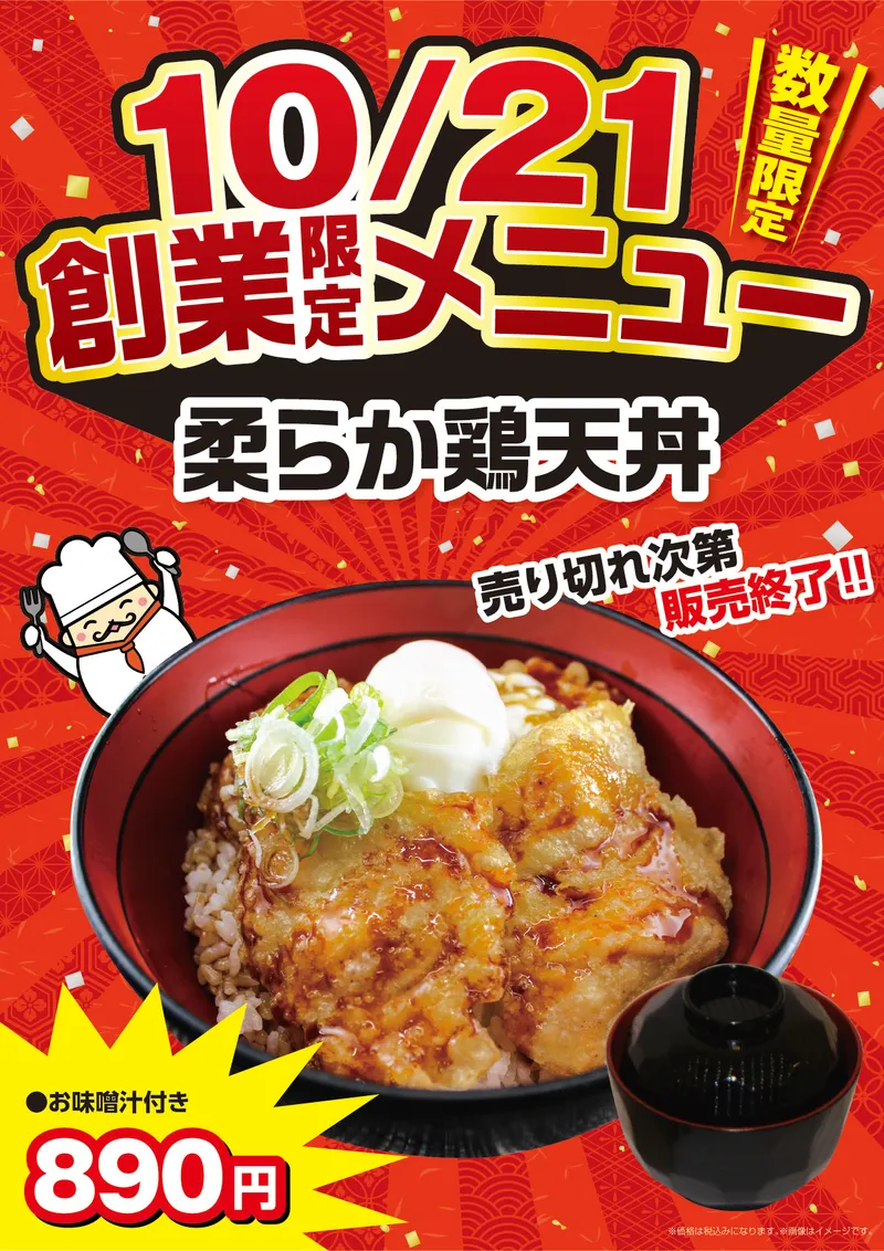 10/21(火)数量限定!『創業限定メニュー 柔らか鶏天丼』 -