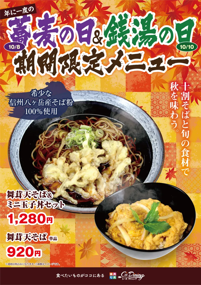 10/8(水)~10/11(土)期間限定!『年に一度の蕎麦の日&銭湯の日メニュー』 -