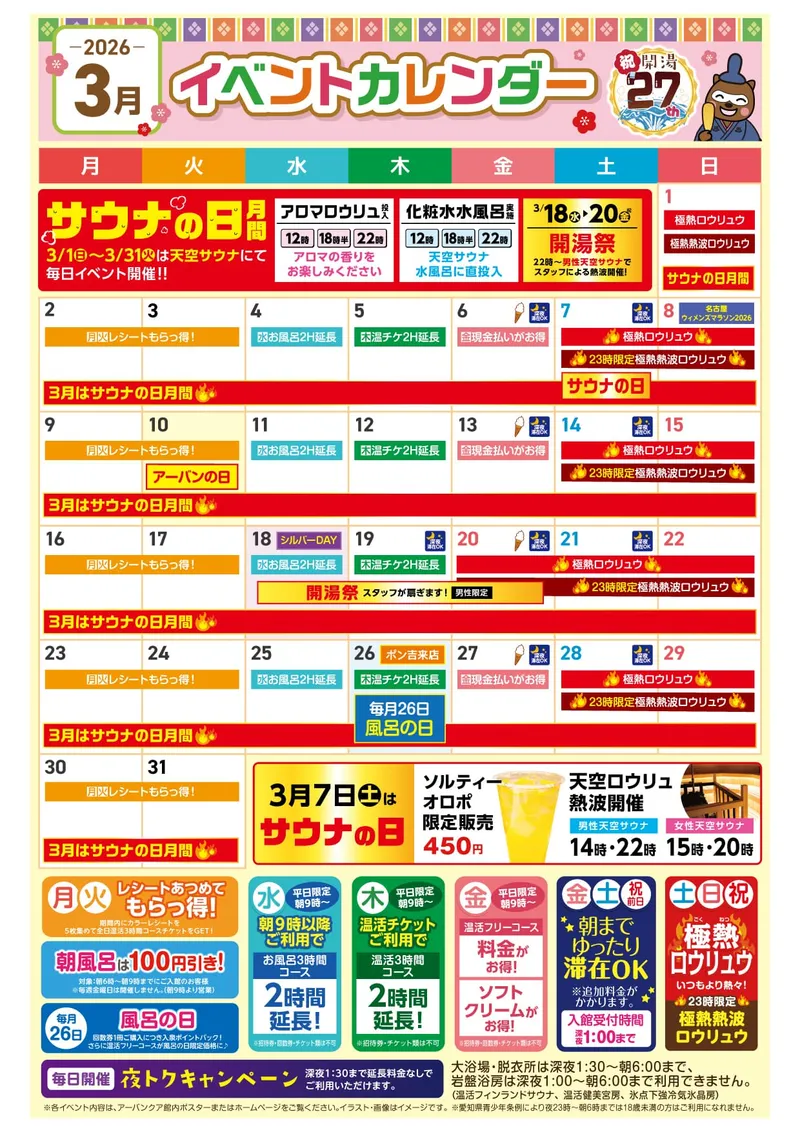 ひとりで楽しみたい人、お友達と楽しみたい人、熱波を楽しみたい人…