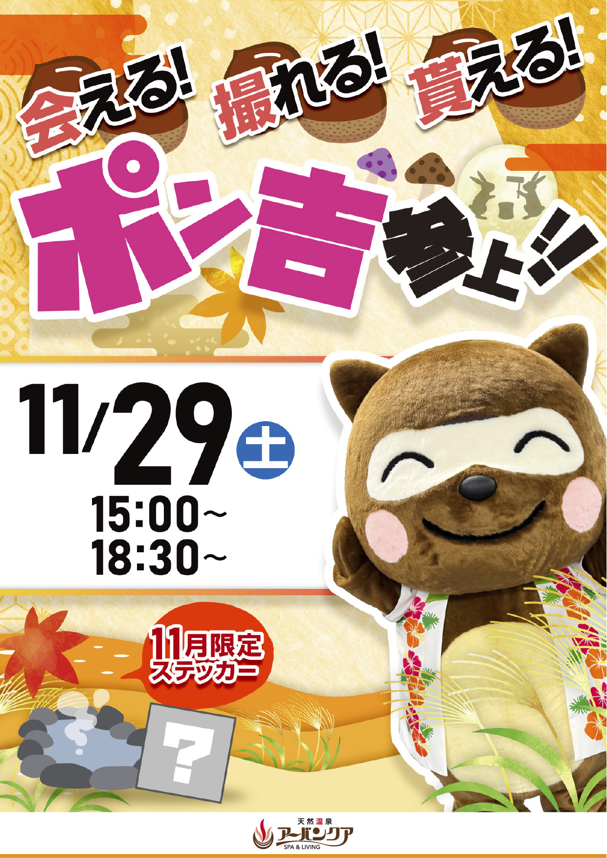 さらに大人気キャラクター「ポン吉」も登場!11月はアーバンクアで秋の癒し時間を満喫しましょう。