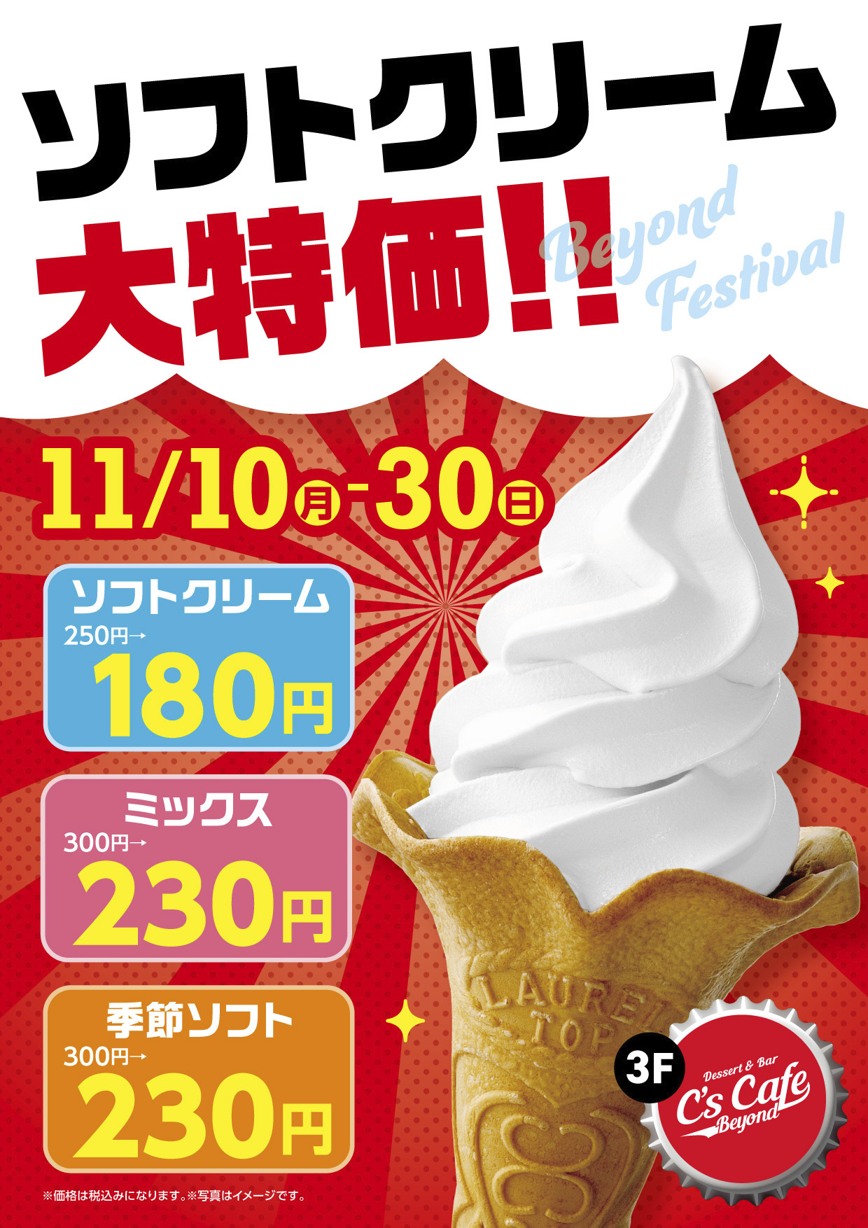 3階カフェ「C’s Cafe Beyond」にてソフトクリームが特別価格で登場!