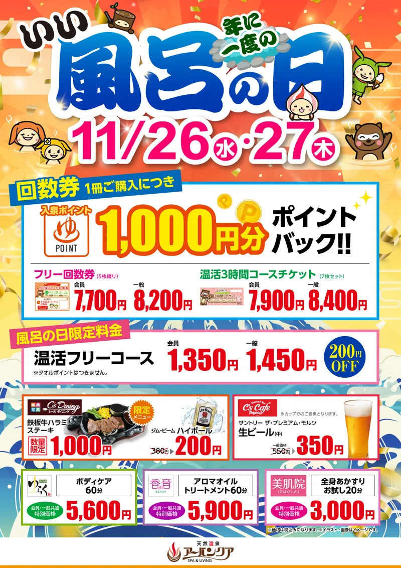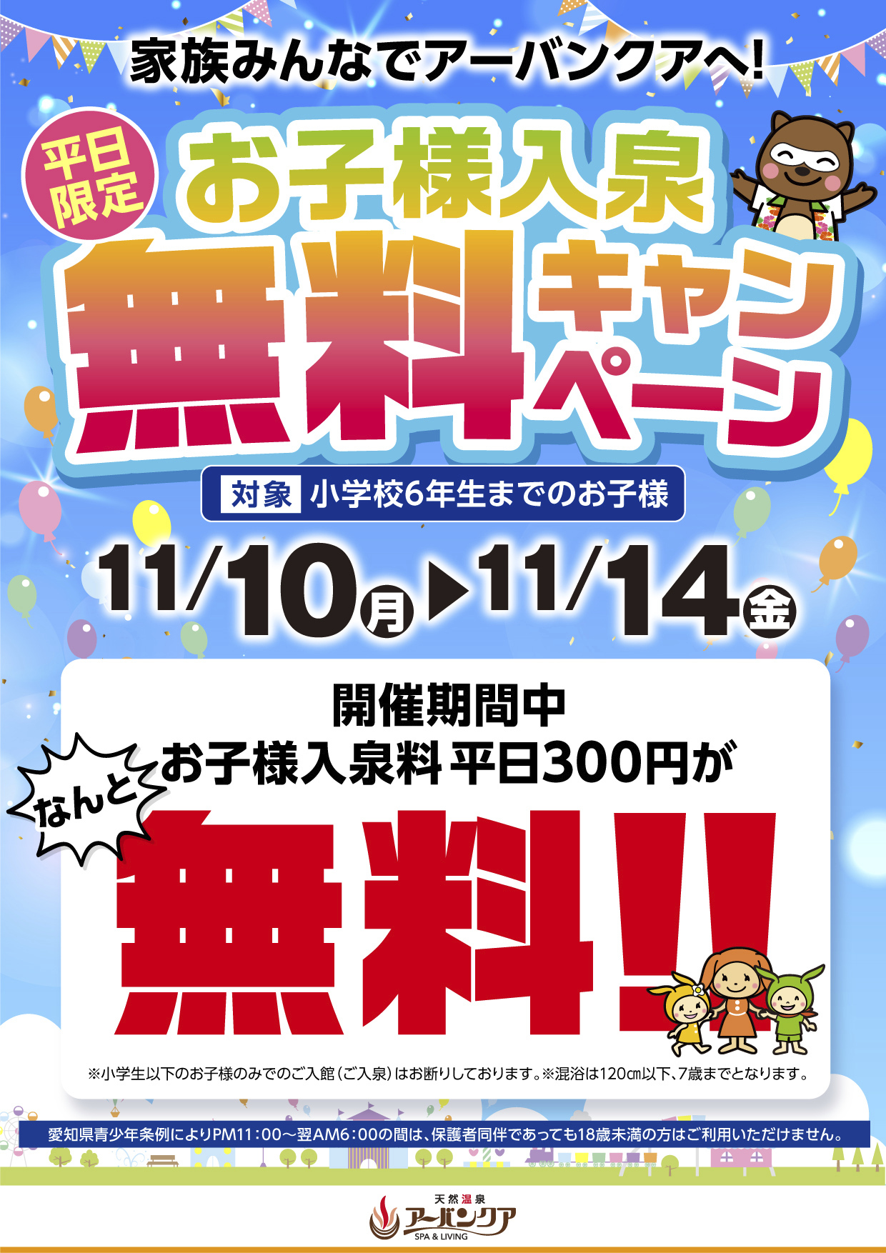 名古屋市中区の温浴施設【アーバンクア】では、11月も心も体も温まるイベントが盛りだくさん!