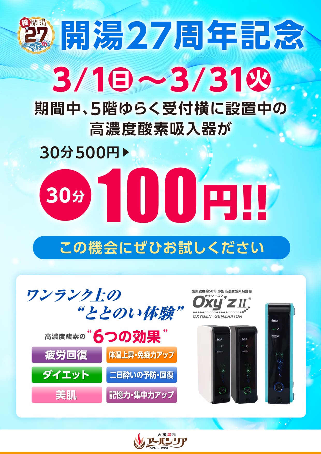 アーバンクアは開湯27周年を迎えました!🌸