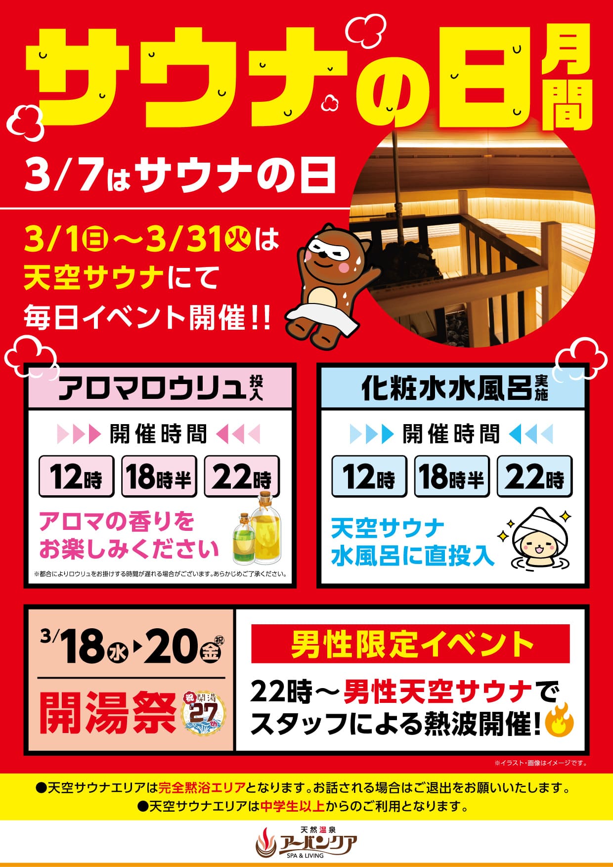 【3月イベント情報まとめ】アーバンクア天空サウナ&27周年感謝祭