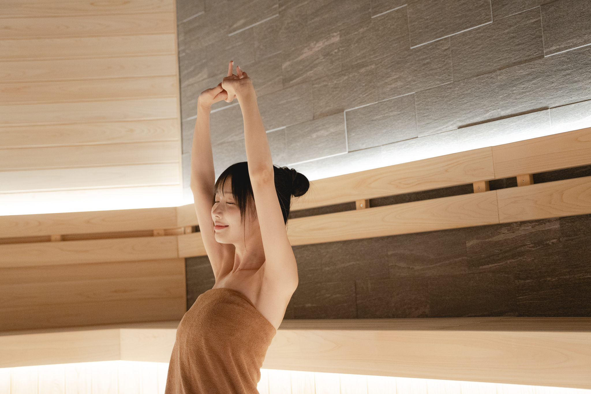 サウナで温まった後、やさしく包み込まれるような肌あたりをお楽しみいただけます。