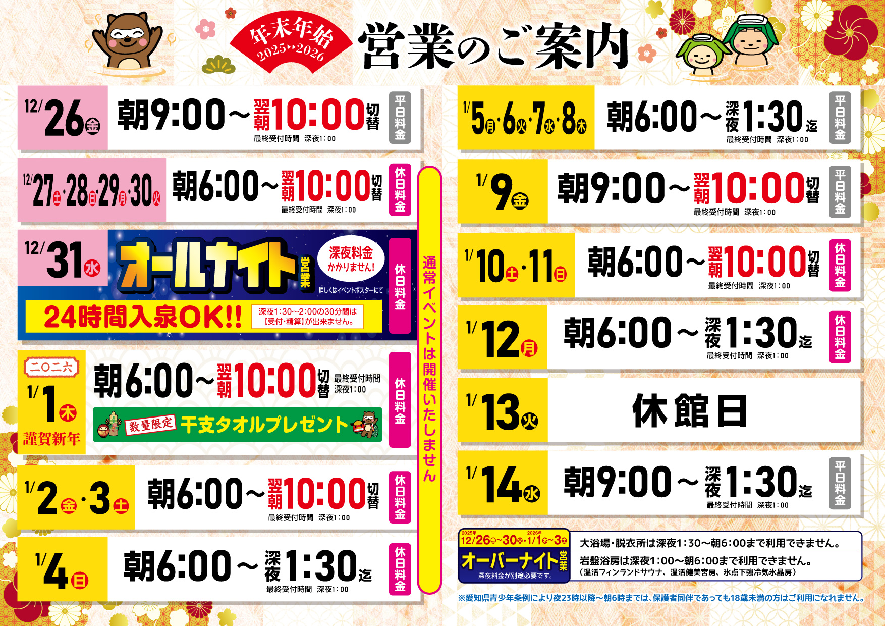 年末年始も営業している温浴施設を名古屋で探している方へ。