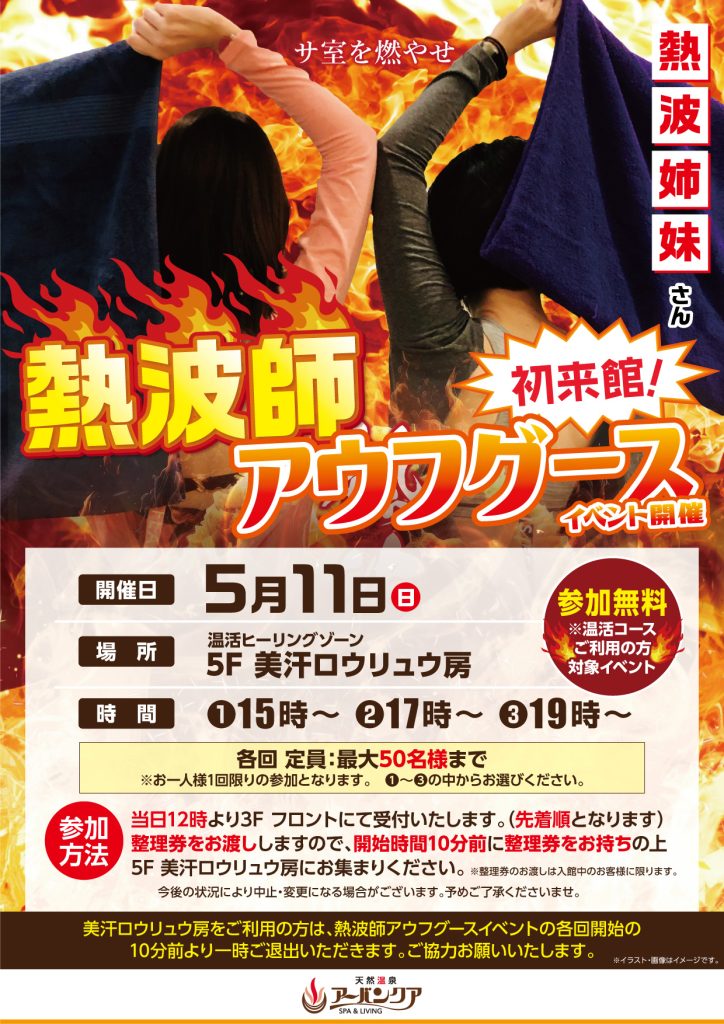 5月11日(日)に、人気熱波師「熱波姉妹」さんがアーバンクアに初登場!