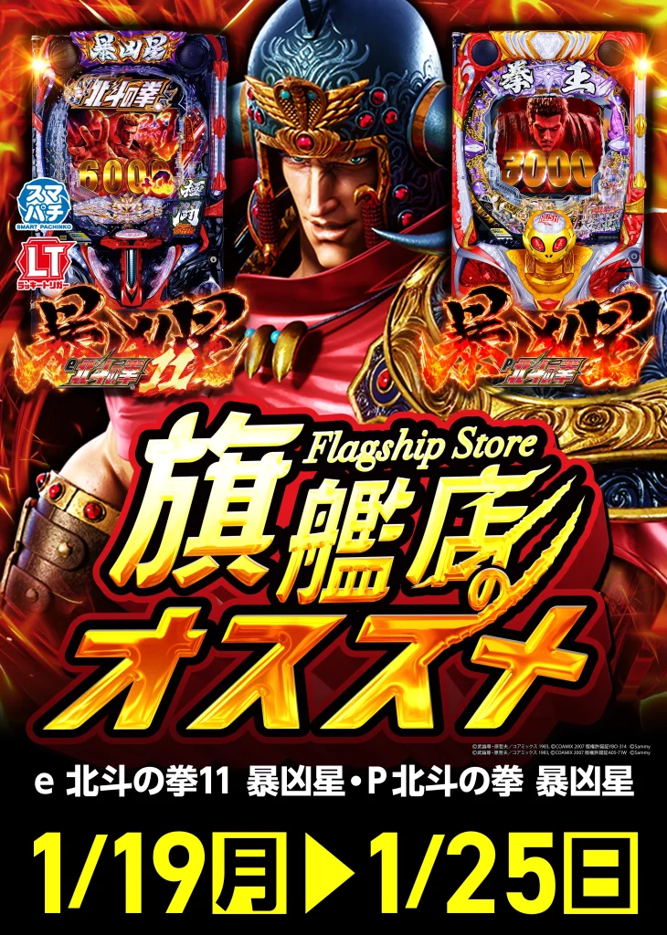 拳王の名にふさわしい出玉性能で乱世を切り開く!! 初当りはすべて獲得出玉が1500個(払い出し)以上で、60%で「拳王RUSH」に突入。 「拳王RUSH」はSTタイプの連チャンゾーンで、10回転+残り保留4個の継続率は約75%。RUSH中の大当りは約50%が出玉3000個(10R×2回・払い出し)、無想転生が発生すれば期待出玉は7500個オーバー!! |
