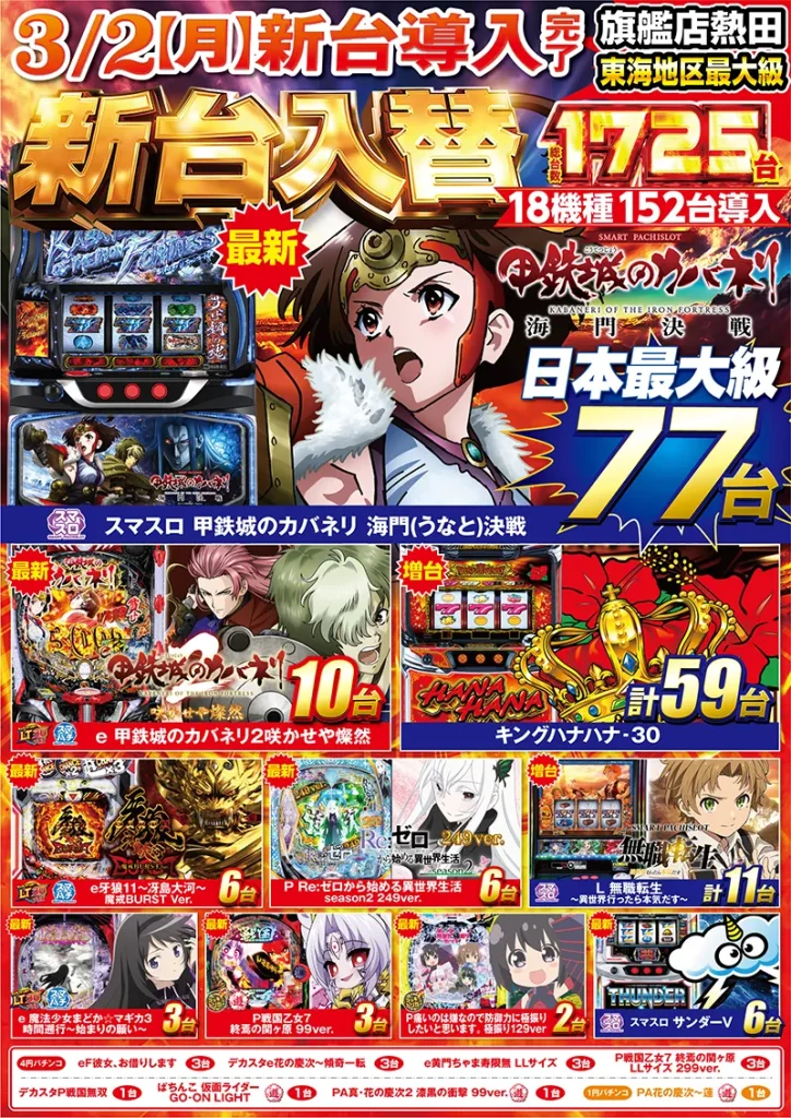 パチンコ・スロット19機種153台導入