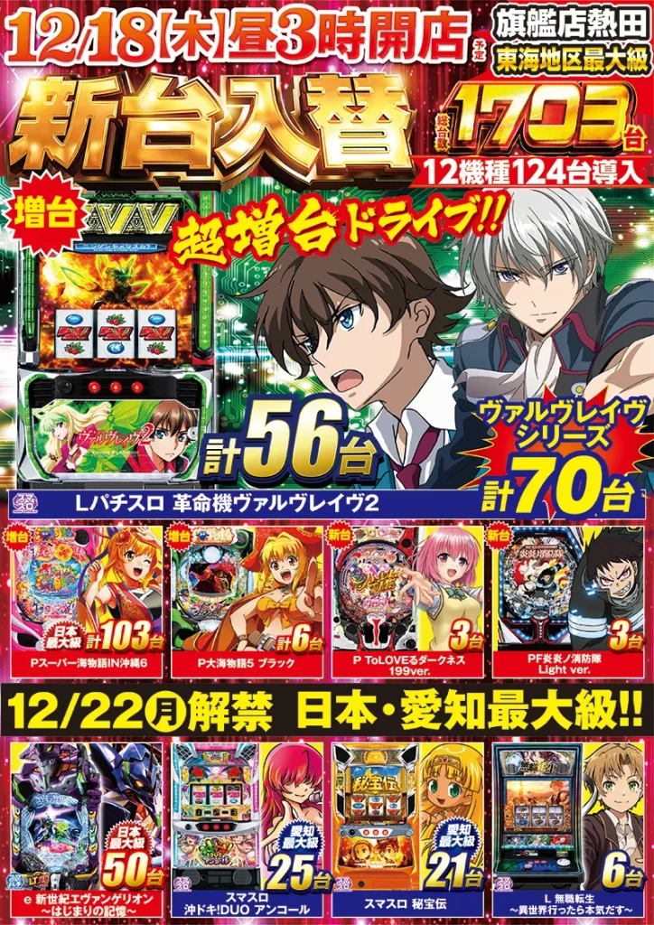パチンコ・スロット20機種145台導入