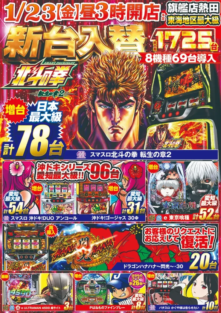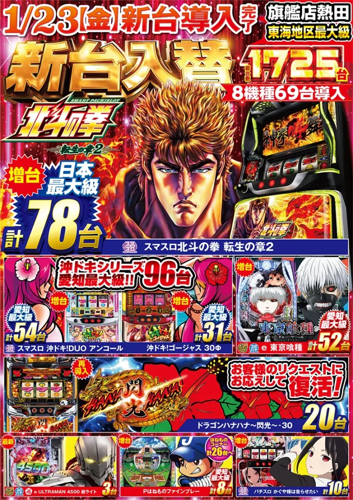 パチンコ・スロット8機種69台導入