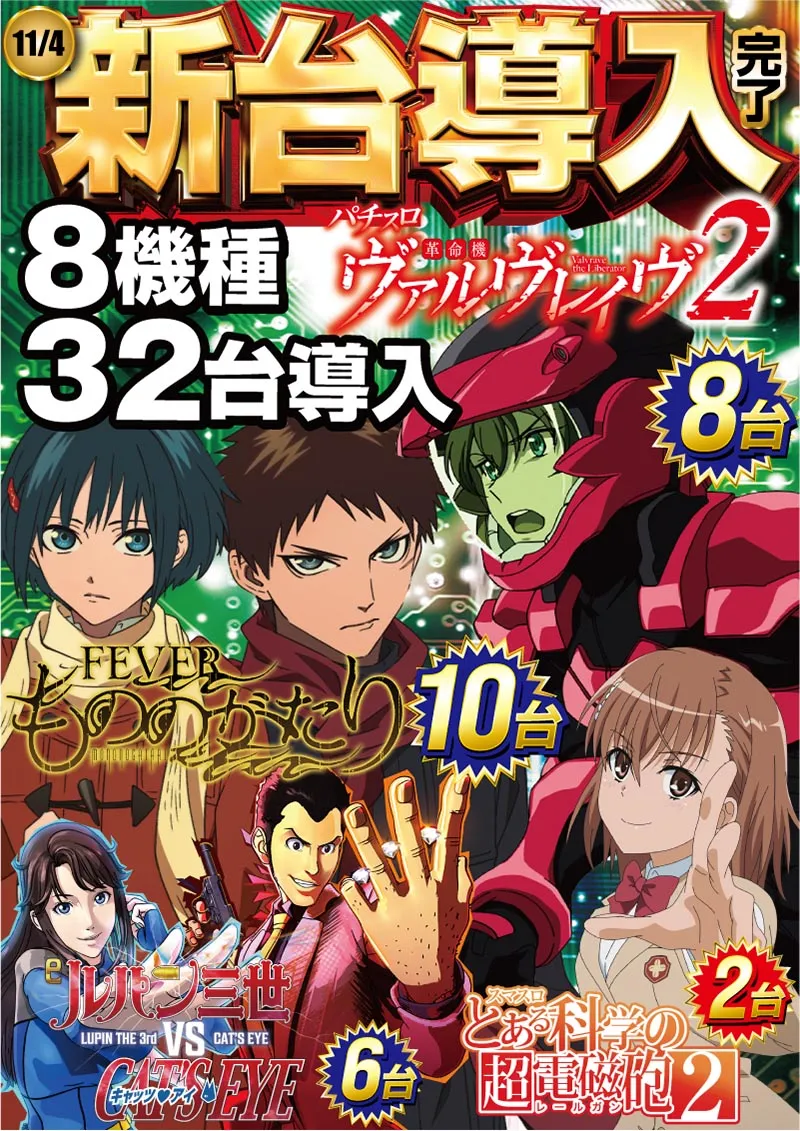 パチンコ・スロット8機種32台導入