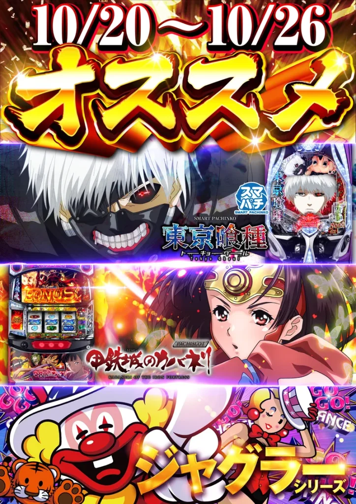 | おすすめ ポイント | ニュータイプアニメアワードで、作品賞、脚本賞、キャラクターデザイン賞、スタジオ賞、サウンド賞にて第1位を獲得し、5冠を達成した大人気アニメ『パチスロ甲鉄城のカバネリ』のパチスロタイアップ機! 通常時は3種類のチャンス目から突入するCZと、ゲーム数消化でボーナスを目指すゲーム性。 初当りボーナスはエピソードボーナスと駿城ボーナスの2種類で、前者はST確定、後者は約20%でSTに突入する。 ST中は高確率でボーナスを抽選し、ボーナス当選でゲーム数がリセット。 ボーナス中は技術介入やチャンス目で規定ポイントを貯めると次回STがカバネリ高確(ボーナス高確状態)でスタートするため、ST↔ボーナスの連打に期待できる。さらに無名回想から突入する継続率80%超の上位ST/(裏)美馬STなど、強力なトリガーも搭載!! |