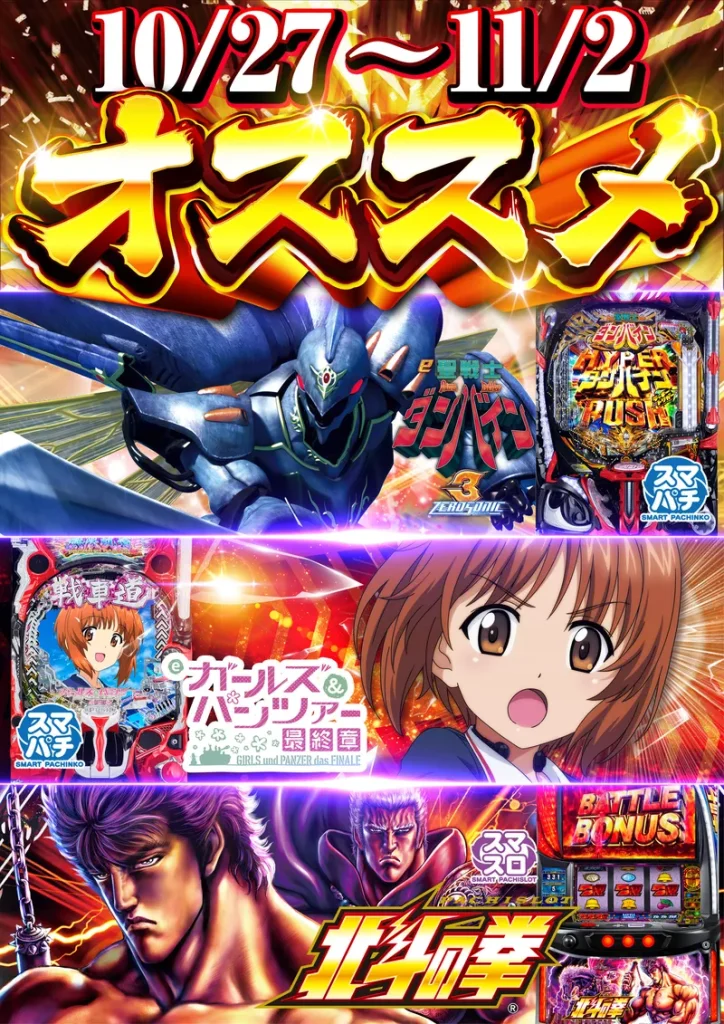 | おすすめ ポイント | 平成パチスロ史上 最も設置されたスロット、北斗の拳がスマスロになって復刻。演出やゲーム性が完全再現されているのが最大の特徴で、バトルボーナスを継続させて出玉を増やす仕様となっている。バトルの性能を底上げしてくれるレイ共闘やトキ共闘、継続率94%を誇る無想転生バトルなど、ロング継続に期待できる新要素も追加されているぞ! |