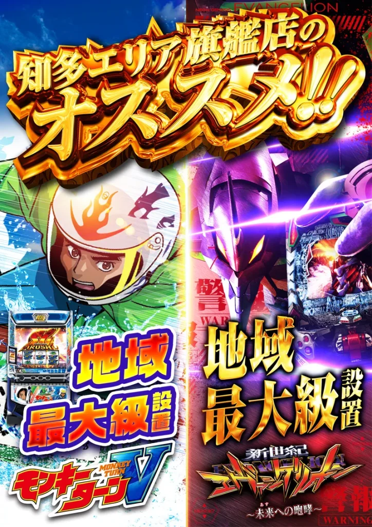 シリーズ最大の可動ギミックを搭載した専用枠でパチンコに新たな歴史を生み出す!! ハンドルを枠の中央に配置した「スマートハンドル」が手首の疲れを軽減。さらに左右どちらの手でも玉の打ち出しが可能と、これまでのパチンコにはなかったユニバーサルデザインを採用している。 スペックはシンプルなV-ST機で、ST突入率は約70%(時短での引き戻し含む)と高い。ST継続率約81%(残り保留での引き戻し含む)×大当り出玉約1500個(電チュー経由時)が生み出す出玉のインパクトは抜群だ。 シリーズお馴染みの演出からパチンコ初登場のエヴァまで、液晶演出でもファンの期待に応える!