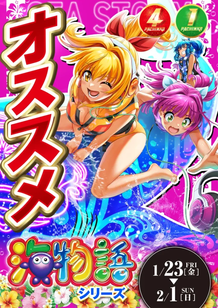遊びやすさ・当たる楽しさ" に重きを置き、パチンコ史上、1番長くユーザーに愛され続けている海物語シリーズ。マリンちゃんなどのキャラクターや魚群予告など、基本的な演出はシリーズを通して一貫しており、広い世代の方に愛されています。 プレイランドキャッスルでも多数の機種を取り揃えておりますので、お好きなスペックや金種でお楽しみください。 |