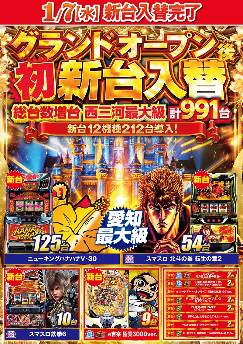 パチンコ・スロット12機種212台導入