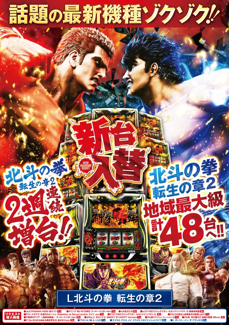 NEW MACHINE 新台入替のご案内 1月20日(火) 昼2時オープン! 17機種36台 一挙導入(予定) SCHEDULE スケジュール キャッスルグループ全店1月21日水曜日朝9時オープン MENU 今月のメニュー 01 新台入替 これが最新導入機種だぁぁぁ! 02 オススメ機種 これが面白い!当店オススメはコレ! 03 機種ラインナップ 選べる楽しさ!設置機種情報はこちら! 04 ランキング&台データ 月間ランキングや当日データをチェック 05 入場方法 入場抽選時間や開店時間をチェック! 06 来店情報 有名人・インフルエンサー来店はこちら 07 販売会・ポイント交換 販売会とポイ活でゲット! 08 厳選賞品・総付景品案内 厳選賞品や無料配布をGET! 09 基本情報・アクセス Let′s Go! 10 設備・サービス 快適遊空間! 各店舗の最新情報やイメージキャラクター吉沢朱音の情報など盛り沢山でおとどけ! MENU メニュー 01 新台入替 02 オススメ機種 03 機種ラインナップ 04 ランキング&台データ 05 入場案内 06 来店情報 07 販売会・ポイント交換 08 厳選賞品・総付景品案内 09 基本情報・アクセス 10 設備・サービス