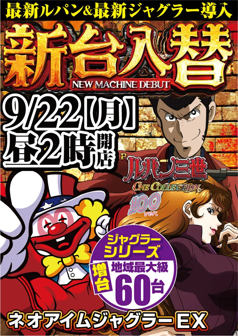 トップ_9/19 18:00 2025 9/19 STORE INTRODUCTION 天白店 NEW MACHINE 新台入替のご案内 9月22日(月)昼2時オープン! 19機種43台 一挙導入 SCHEDULE スケジュール キャッスルグループ全店9月24日水曜日朝9時オープン MENU 今月のメニュー 01 新台入替 これが最新導入機種だぁぁぁ! 02 オススメ機種 これが面白い!当店オススメはコレ! 03 機種ラインナップ 選べる楽しさ!設置機種情報はこちら! 04 ランキング&台データ 月間ランキングや当日データをチェック 05 入場方法 入場抽選時間や開店時間をチェック! 06 来店情報 有名人・インフルエンサー来店はこちら 07 販売会・ポイント交換 販売会とポイ活でゲット! 08 厳選賞品・総付景品案内 厳選賞品や無料配布をGET! 09 基本情報・アクセス Let′s Go! 10 設備・サービス 快適遊空間! 各店舗の最新情報やイメージキャラクター吉沢朱音の情報など盛り沢山でおとどけ! MENU メニュー 01 新台入替 02 オススメ機種 03 機種ラインナップ 04 ランキング&台データ 05 入場案内 06 来店情報 07 販売会・ポイント交換 08 厳選賞品・総付景品案内 09 基本情報・アクセス 10 設備・サービス