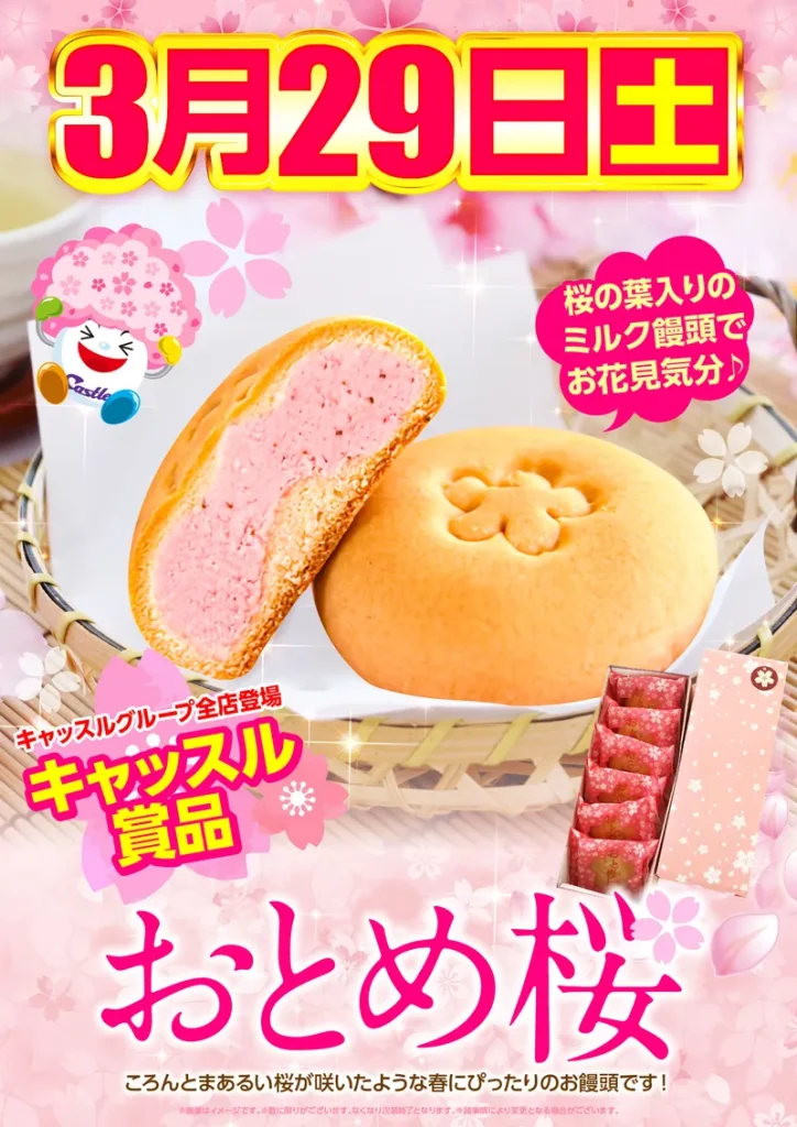 厳選賞品・総付景品案内_2/28 18:00 2025 1/30 今月の総付景品案内 3月15日(土) 総付景品を無料配布 今月の厳選賞品 3月5日(水)12日(水) 19日(水)26日(水) 入荷予定 キャッスル名物 キャッスルオリジナルポップコーン 3月29日(土) キャッスルグループ厳選 おとめ桜 厳選賞品・総付景品案内