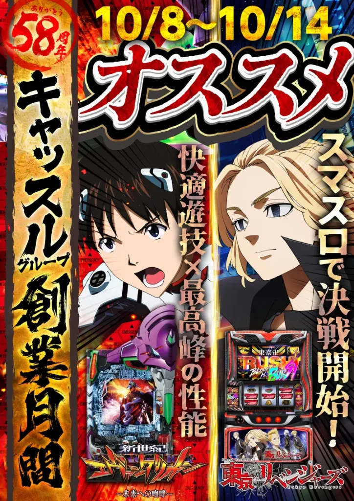 ●超人気作品「東京リベンジャーズ」とのタイアップ機が登場 ●通常時はポイント契機の周期抽選とレア役契機のCZで初当りを抽選 ●AT「東卍ラッシュ」は純増約3.2枚/Gの差枚数管理型 ●バトル型CZの一触即発勝利で東卍アタックへ突入 ●東卍アタックでは卍目が停止したマスに対応した報酬を獲得 ●リベンジチャンスは上位ATをかけたCZ ●上位ATは純増約8.0枚で、上乗せ性能もパワーアップ ●上位AT後は引き戻し期待度約80%の天上天下唯我独尊へ ●黒い衝動は期待枚数3000枚超を誇る最強特化ゾーン!! |