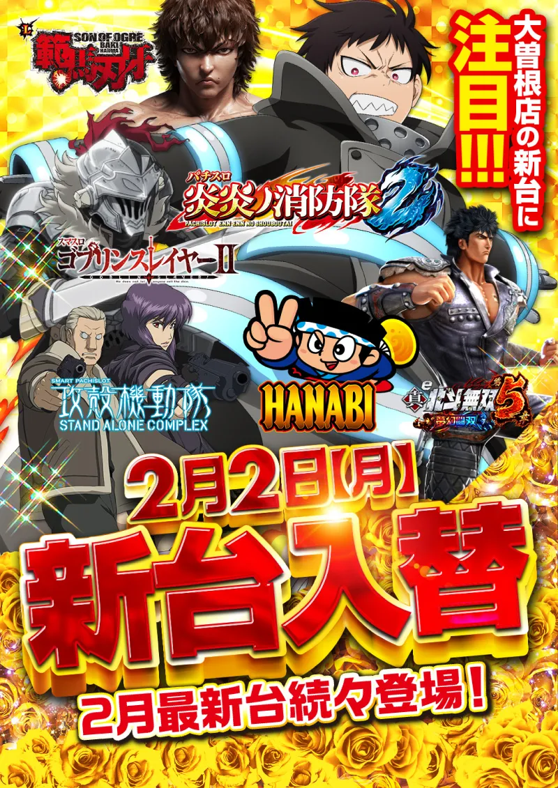 NEW MACHINE 新台入替のご案内 2月2日(月)朝9時オープン! 9機種38台一挙導入(予定) SCHEDULE スケジュール キャッスルグループ全店2月11日水曜日朝9時オープン MENU 今月のメニュー 01 新台入替 これが最新導入機種だぁぁぁ! 02 オススメ機種 これが面白い!当店オススメはコレ! 03 機種ラインナップ 選べる楽しさ!設置機種情報はこちら! 04 ランキング&台データ 月間ランキングや当日データをチェック 05 入場方法 入場抽選時間や開店時間をチェック! 06 来店情報 有名人・インフルエンサー来店はこちら 07 厳選賞品・総付景品案内 厳選賞品や無料配布をGET! 08 ポイント景品入荷 ポイ活してゲット! 09 販売会・屋台 嬉しい!楽しい!催し物いっぱい 10 基本情報・アクセス Let′s Go! 11 設備・サービス 快適遊空間! 遊技の後は大曽根温泉湯の城で決まり 各店舗の最新情報やイメージキャラクター吉沢朱音の情報など盛り沢山でおとどけ! MENU メニュー 01 新台入替 02 オススメ機種 03 機種ラインナップ 04 ランキング&台データ 05 入場案内 06 来店情報 07 厳選賞品・総付景品案内 08 ポイント景品入荷 09 販売会・屋台 10 基本情報・アクセス 11 設備・サービス