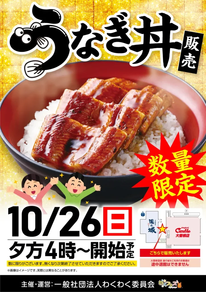販売会・屋台_9/30 18:00 2025 9/30 今月の販売会 今月の屋台 10/1(水)・10/8(水) 10/15(水)・10/22(水)・10/29(水) クセになるこの味!やきとり屋台「竜鳳」登場! 10/26(日) 食べた瞬間、笑顔になるおいしさ!「うな丼」登場! 屋台