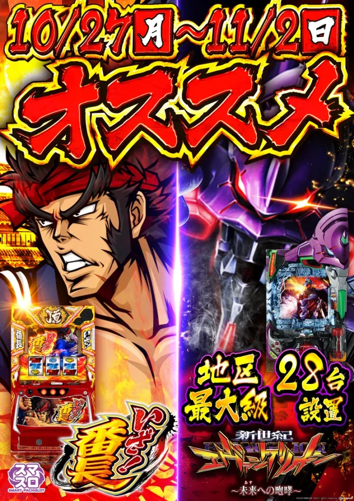 | おすすめ ポイント | シリーズ最大の可動ギミックを搭載した専用枠でパチンコに新たな歴史を生み出す!! ハンドルを枠の中央に配置した「スマートハンドル」が手首の疲れを軽減。さらに左右どちらの手でも玉の打ち出しが可能と、これまでのパチンコにはなかったユニバーサルデザインを採用している。 スペックはシンプルなV-ST機で、ST突入率は約70%(時短での引き戻し含む)と高い。ST継続率約81%(残り保留での引き戻し含む)×大当り出玉約1500個(電チュー経由時)が生み出す出玉のインパクトは抜群だ。 シリーズお馴染みの演出からパチンコ初登場のエヴァまで、液晶演出でもファンの期待に応える! |