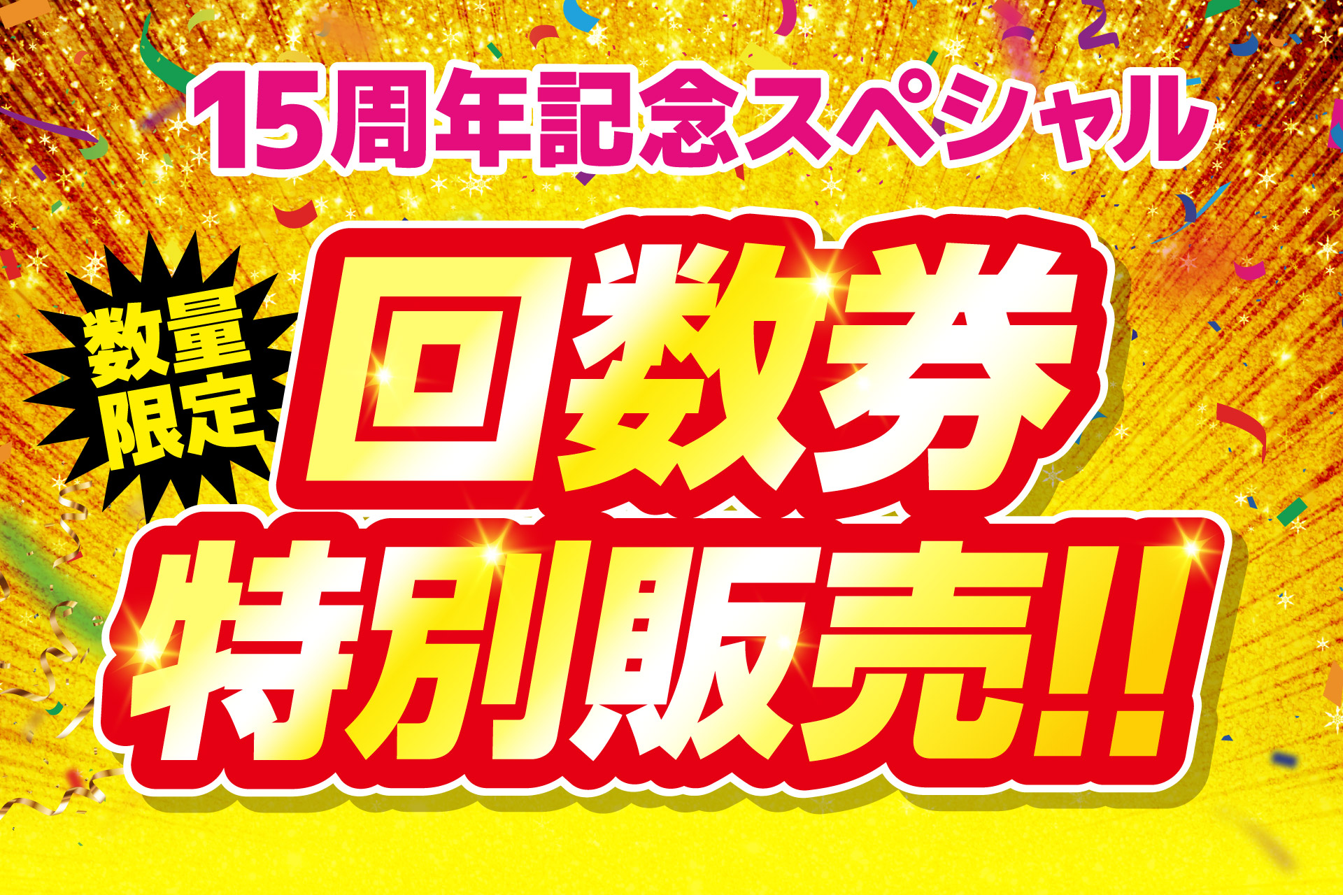 開業15周年を記念し、周年日周辺に最大の目玉となる特典をご用意いたしました。