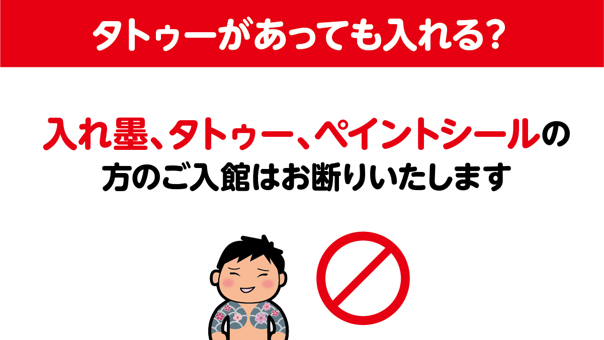 当館では、タトゥーや刺青のある方のご入浴はお断りしています。