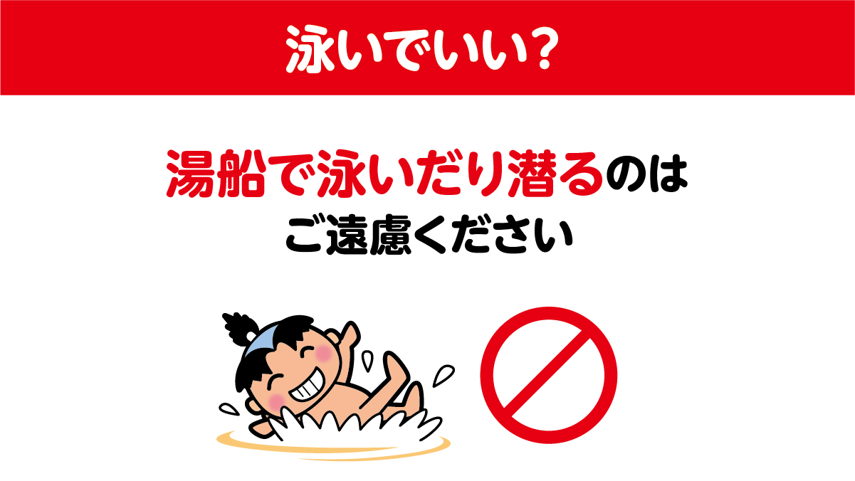 温泉は泳ぐ場所ではありません。顔を直接つけるのもNGです。
