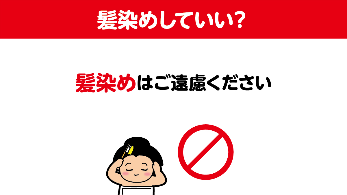 お湯や設備を汚してしまう原因になります。髪染めはご自宅でお願いします。