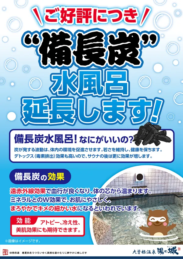 季節限定!備長炭水風呂 始めました!