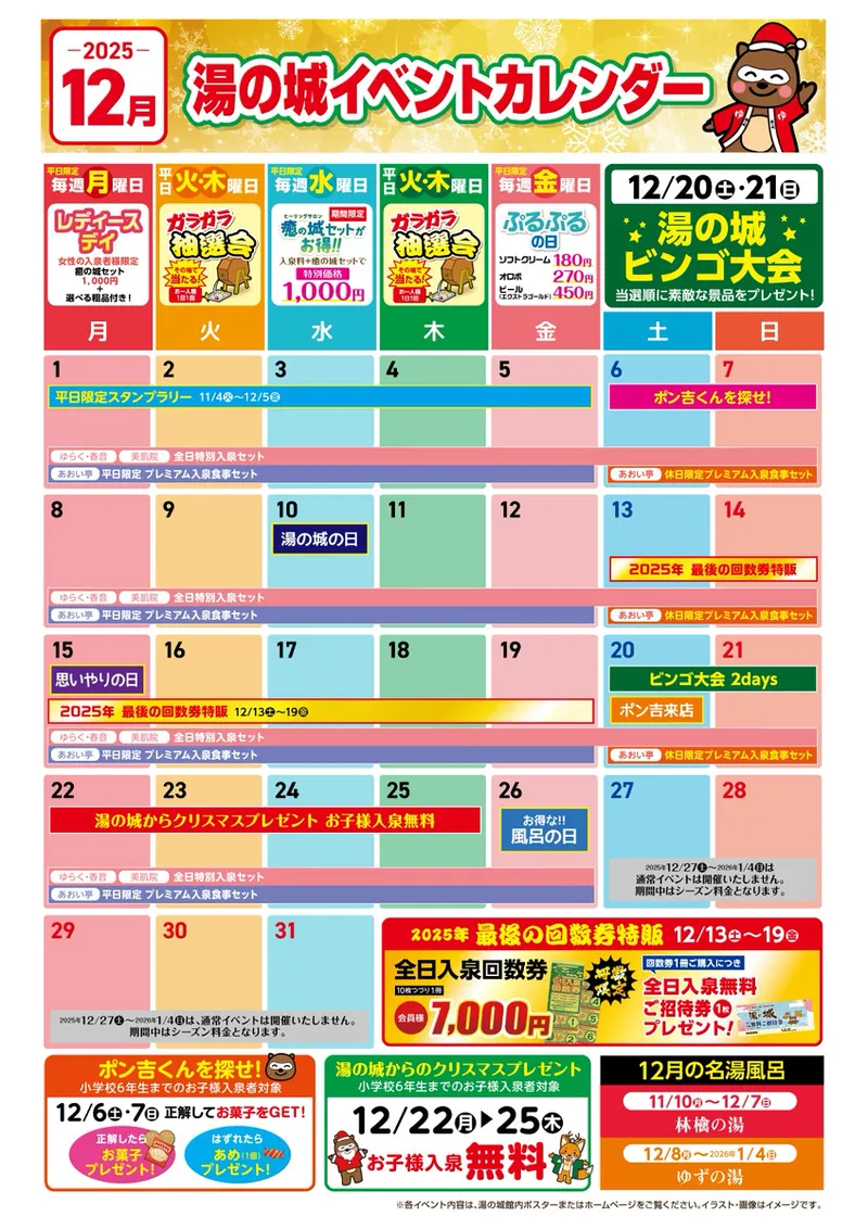 お知らせ Slide 2025.9.23 10/10(金)~ポイント交換数を変更いたします。 2025.8.5 8/10(日)~8/31(日)開催! SNS限定プールバッグプレゼントキャンペーン 2024.12.25 2024年12/28(土)~2025年1/5(日)休日料金 もっと見る イベントカレンダー 26b845b240fe3264bb280ba60591e7cb8049debf090b1e11a35cd7a12fcd7466-400x20012db2049f335f4c62ac2842fcf733b39-768x384-1-400x200 湯の城トピックス 営業案内 初めての方へ お風呂 岩盤浴 サウナ 食事処 ぷるぷる ポン吉くん 店舗情報 メディア実績 リラクゼーション その他 お風呂 2025.10.31 全国でも珍しい2つの泉質!大垣天然温泉湯の城で贅沢な湯めぐり 岩盤浴 2025.10.31 湯の城自慢!2つのロウリュウで、サウナの熱波を味わい尽くす お食事処 2025.10.31 この一杯を逃すな!大垣11月限定・追い飯付きまぜそば2種が登場! 岩盤浴 2025.10.31 大垣で至福の一日を。ヒーリングサロン癒の城で心と体を解放する贅沢時間 もっと見る ブログ 全て おすすめ お知らせ お知らせブログ重要なお知らせ 詳細はこちら> おすすめブログ 詳細はこちら> お知らせブログ 詳細はこちら> お知らせブログ 詳細はこちら> おすすめブログ 詳細はこちら> おすすめブログ 2023.03.27 漫画でわかるととのい作法【ととのい方編】 詳細はこちら> おすすめブログ 2023.02.27 漫画でわかるととのい作法【サウナ入る前編】 詳細はこちら> おすすめブログ 2023.05.15 漫画でわかるととのい作法【サウナ出た後編】 詳細はこちら> おすすめブログ 2023.02.21 とってもお得!『新規会員様募集!』 詳細はこちら> おすすめブログ 2023.02.21 平日朝『手ぶらで朝風呂』 詳細はこちら> お知らせブログ重要なお知らせ 2023.12.21 大垣天然温泉湯の城がニフティ温泉 年間ランキング 2023にて岐阜県総合ランキング:4位を受賞いたしました。 詳細はこちら> お知らせブログ 2023.02.28 岐阜最アツサウナが湯の城にあり!? 詳細はこちら> お知らせブログ 2023.02.28 大垣湯の城のナノ天然温泉って? 詳細はこちら> もっと見る お知らせ 閉じる お知らせ 閉じる