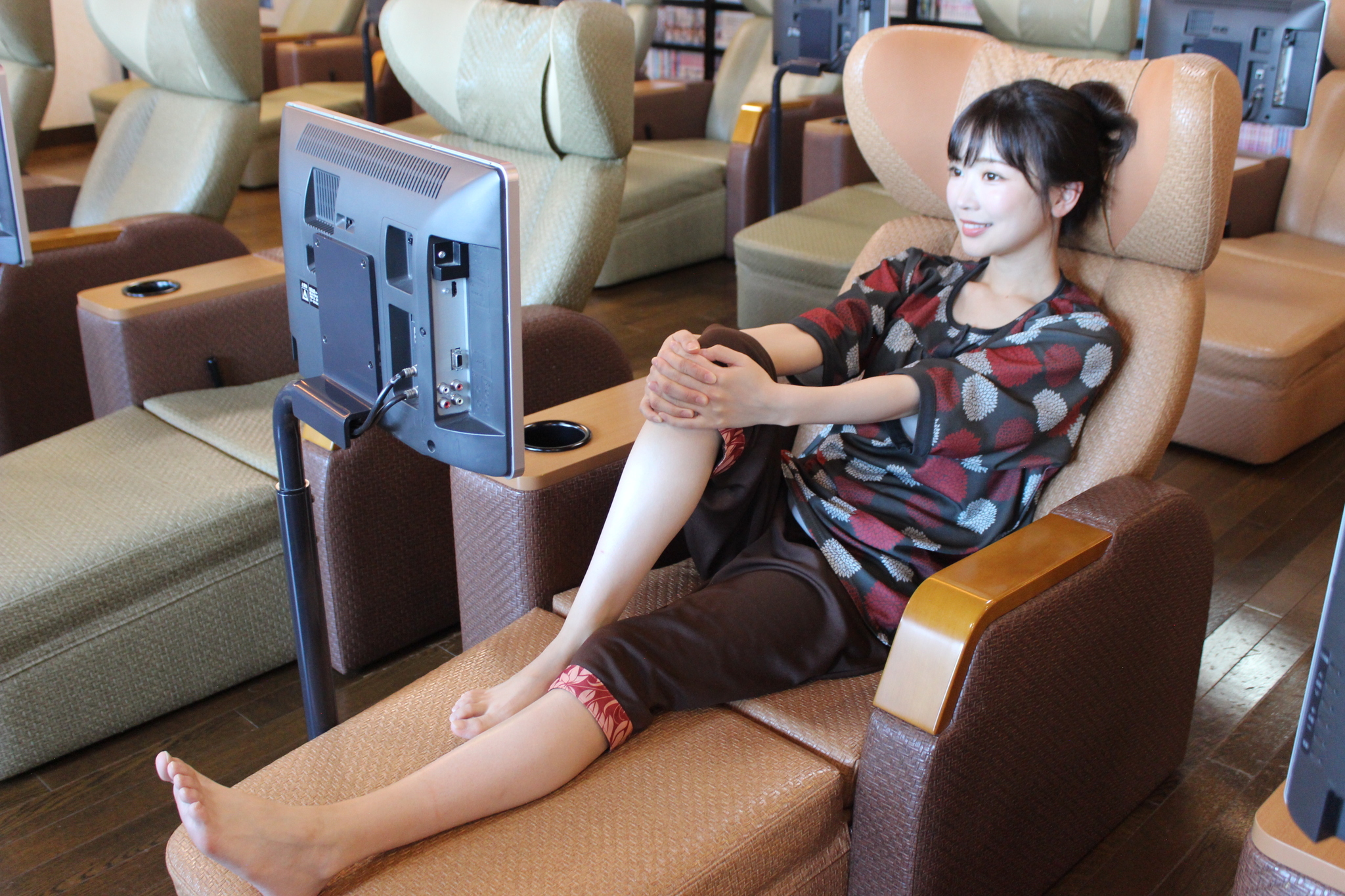ヒーリングホールのリクライナーには、各シートにテレビが完備されています。見たい番組を見逃す心配もなく、マンガを読んだり、仮眠を取ったり、自由な過ごし方ができます。大垣の湯の城で、自分だけの特等席を見つけてください。