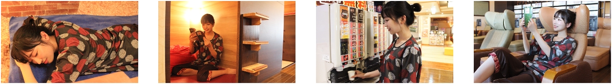 リクライナーは、長時間マンガを読んでも疲れにくい設計になっています。また、ゆったりとしたシートは仮眠にも最適で、岩盤浴で疲れた体を休めるのにぴったりです。