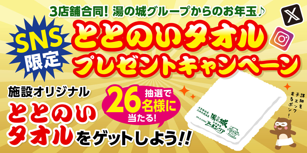 SNSフォローで参加できる「ととのいタオル」プレゼントキャンペーンを開催!2026年にちなんで、抽選で26名様に限定デザインタオルをお届けします。
