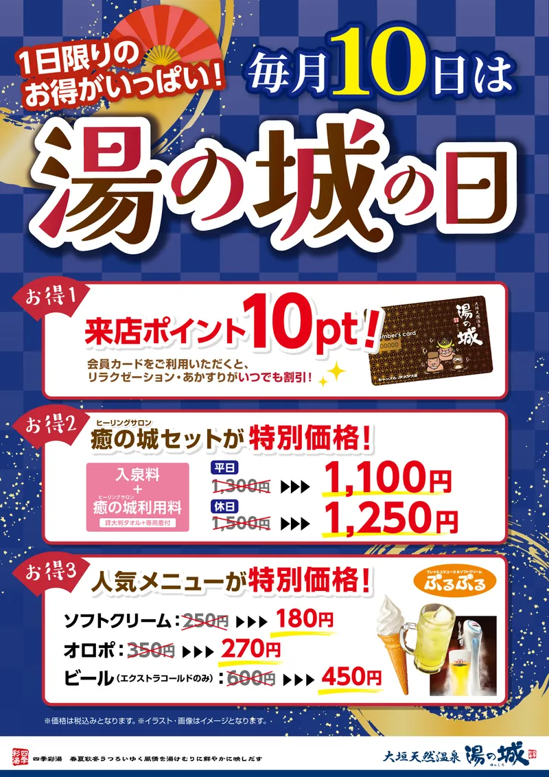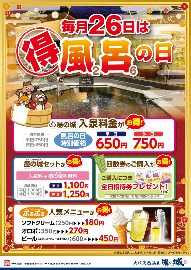 大垣天然温泉湯の城の定番イベントで癒しとお得を満喫!