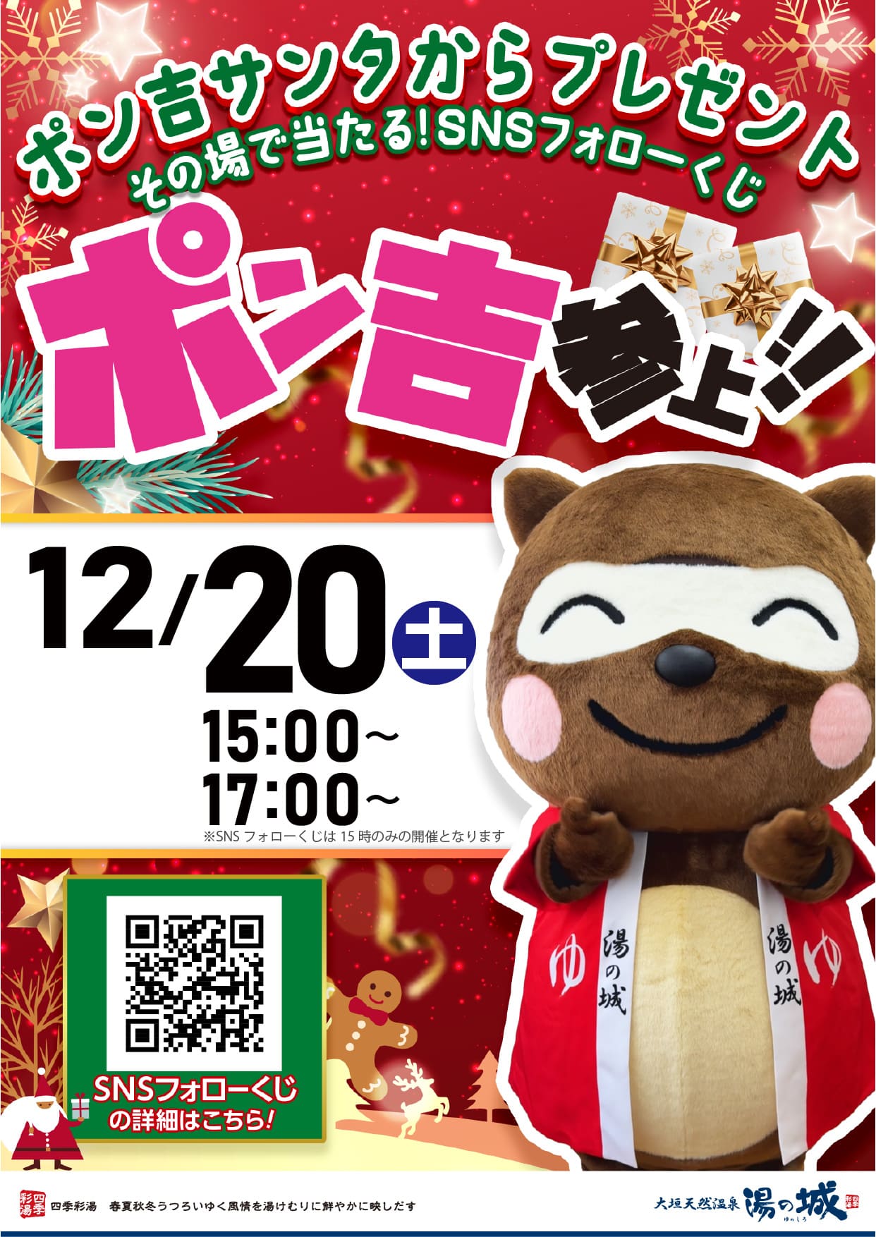 ◆12/20(土)ポン吉サンタからプレゼント!SNSフォローくじ