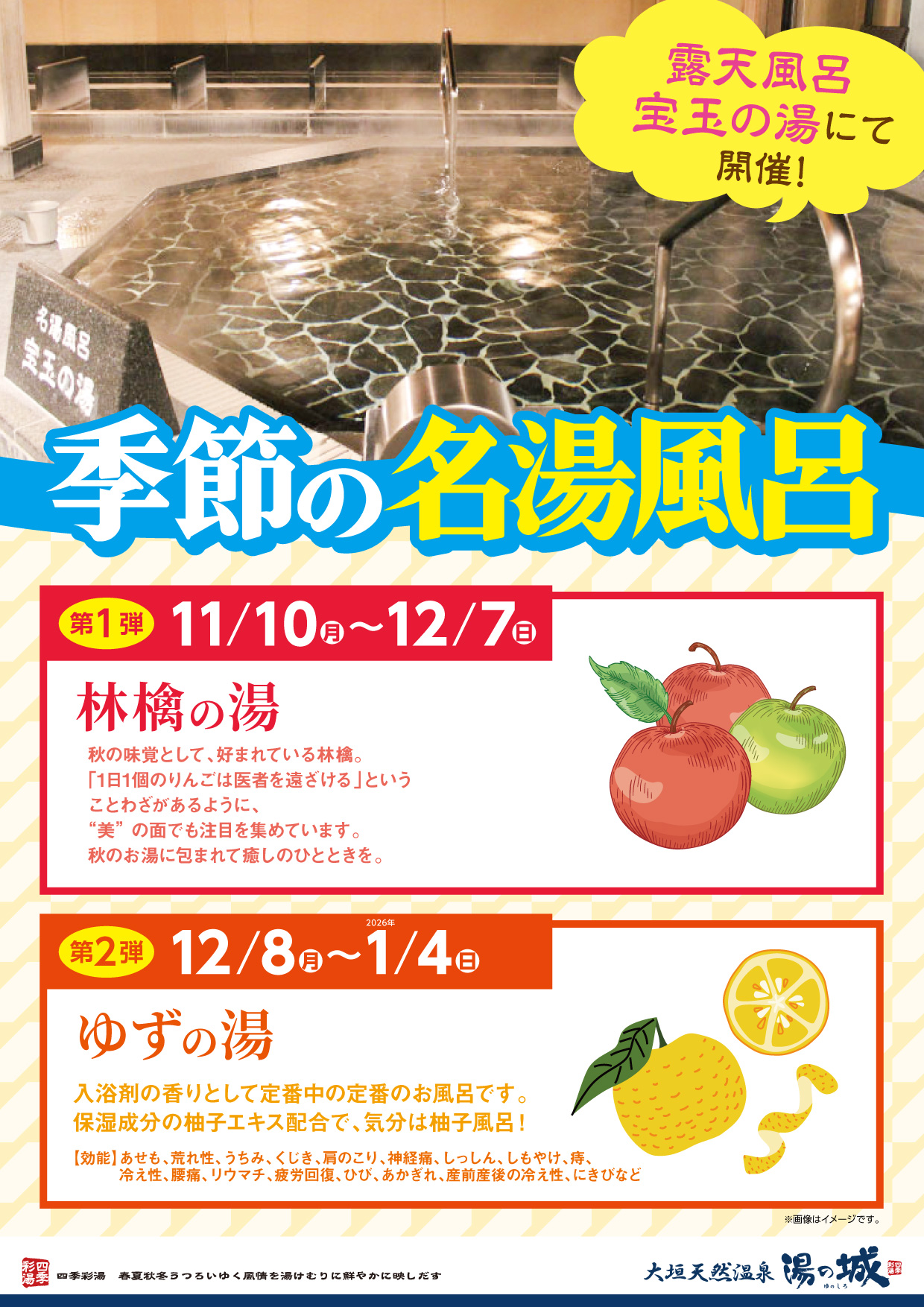 ◆12/8(月)~1/4(日)名湯風呂が「ゆず湯」に変身