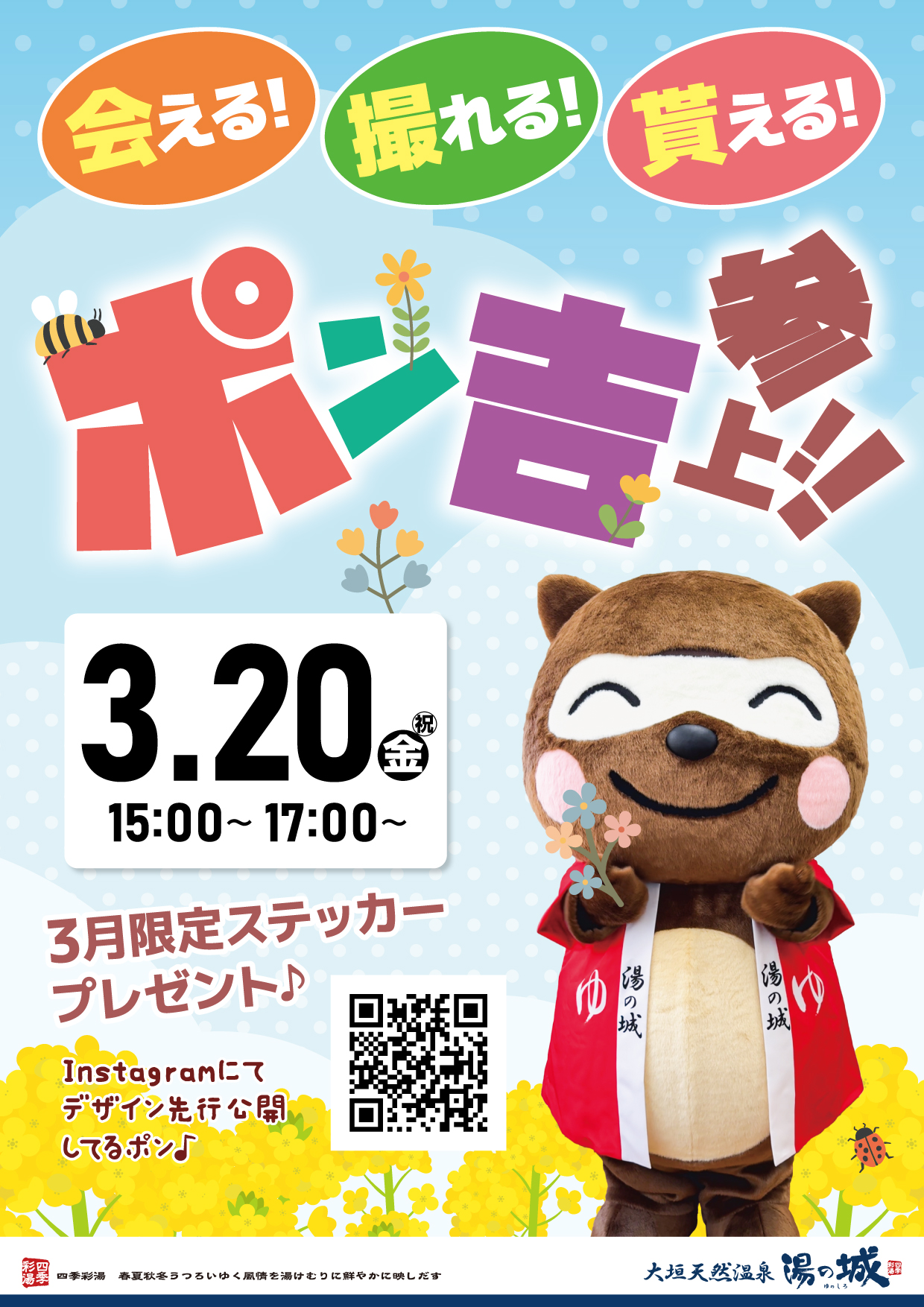 🐻3/20(金・祝)みんな大好きポン吉が大垣天然温泉湯の城へ来館