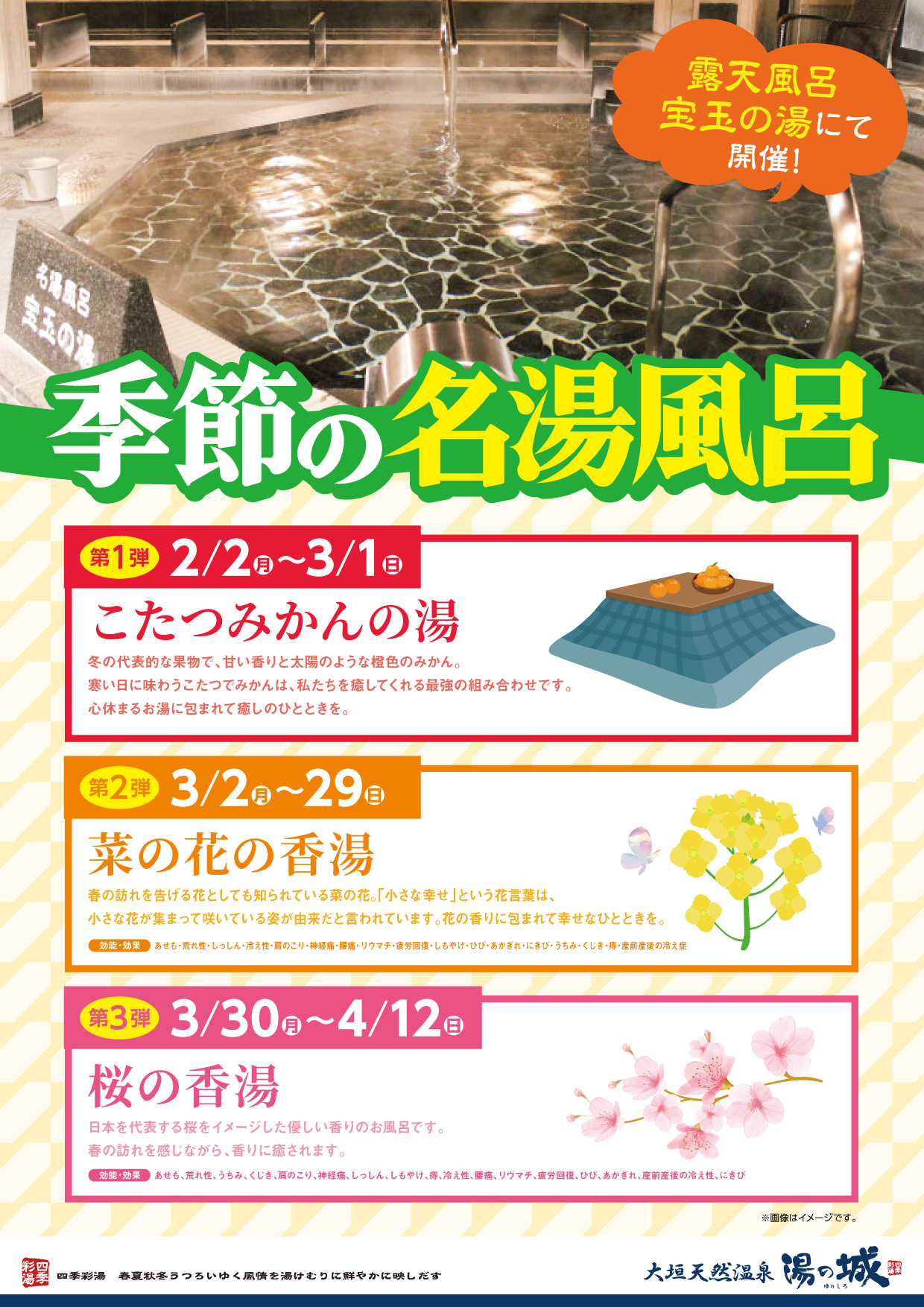 • 四季の香湯 菜の花(~3/29)→桜(3/30~)