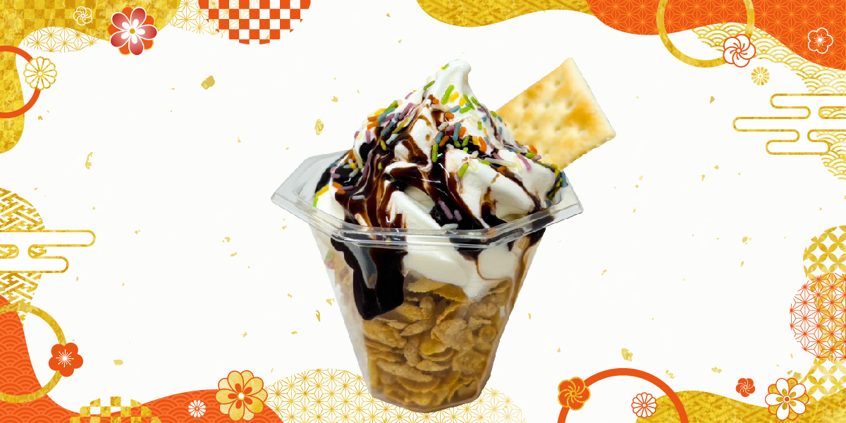 第3位は、「チョコサンデー」です。濃厚なチョコレートソースがたっぷりとかかったソフトクリームに、サクサクのコーンフレークやトッピングが加わった、見た目にも華やかな一品。チョコレートの深い甘さとソフトクリームのミルキーな味わいが絶妙にマッチして、チョコ好きにはたまらない贅沢なサンデーです。